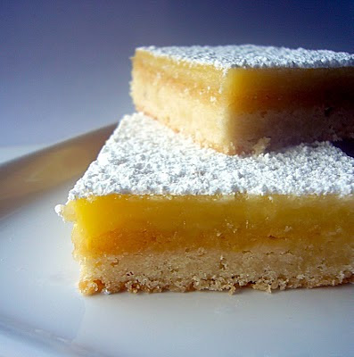 Whisk together 1-1/2 cups confectioners' sugar, 2 tbl flour, baking powder and a pinch of salt. In another bowl beat eggs until they have tripled in volume are pale yellow and fluffy. Add sugar and flour mixture and beat on low until combined. Add lemon juice and beat until smooth. Pour over the cooled crust. Bake until the filling is just set in the center about 18-20 minutes. Let cool completely.